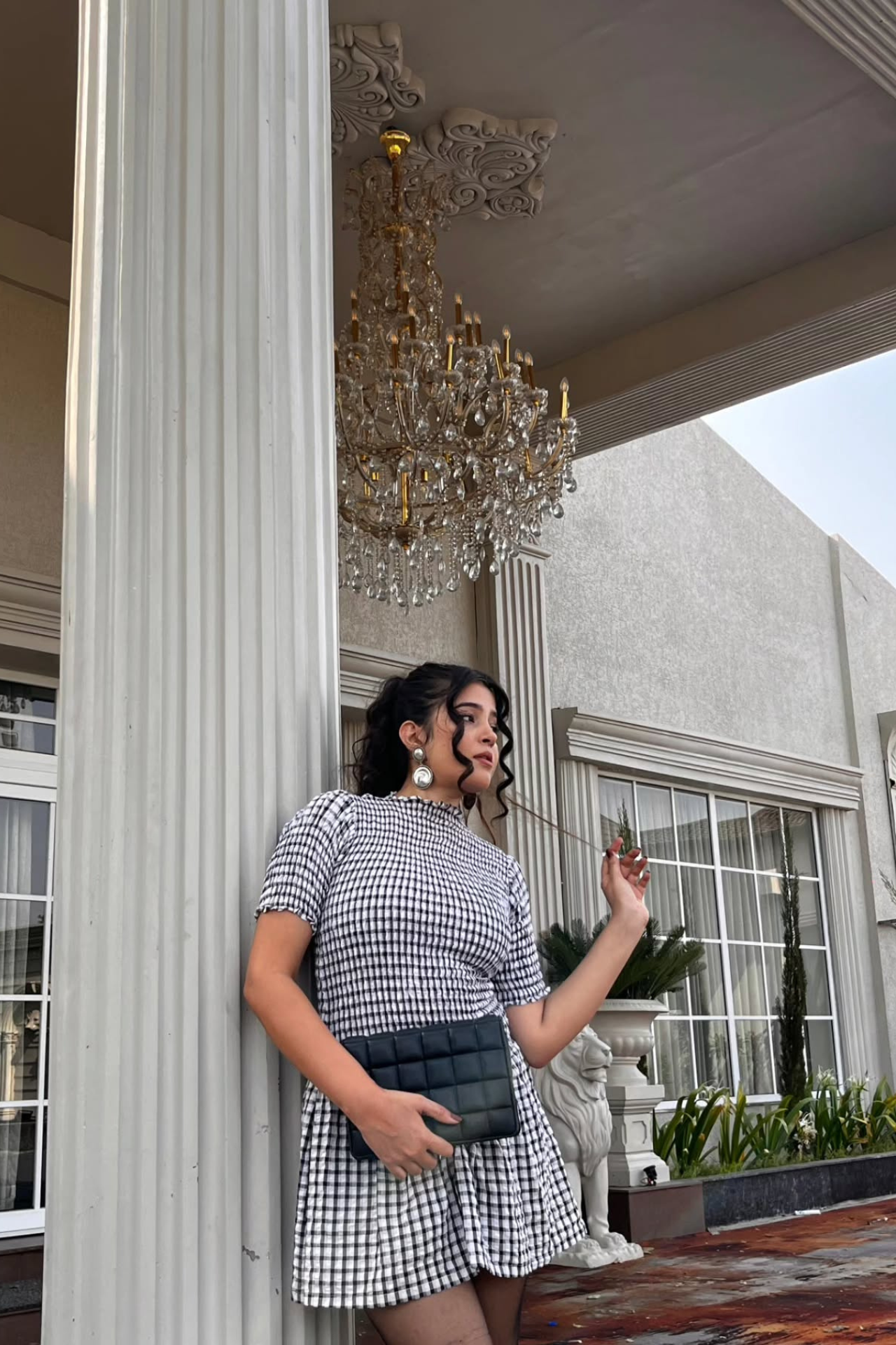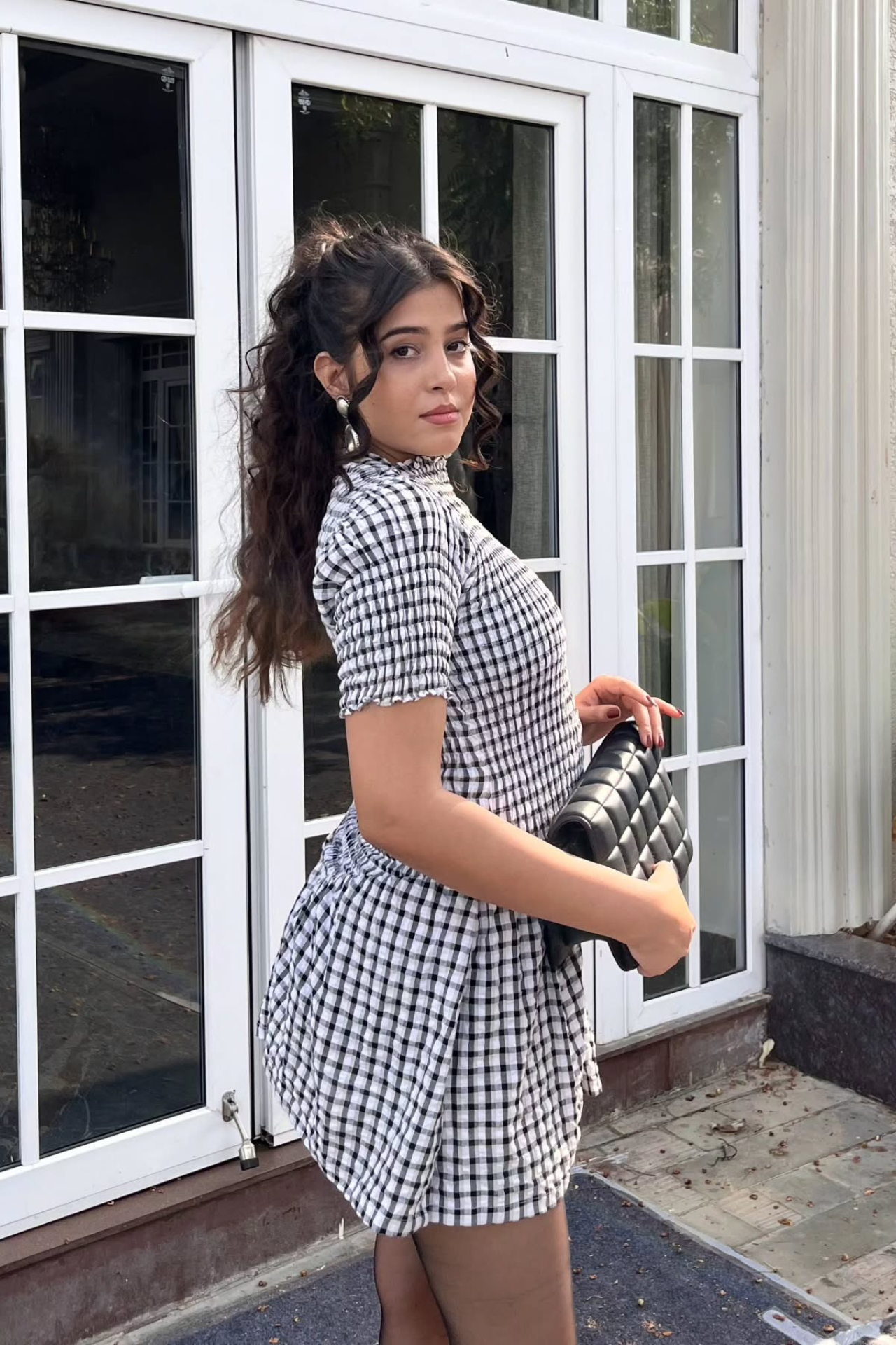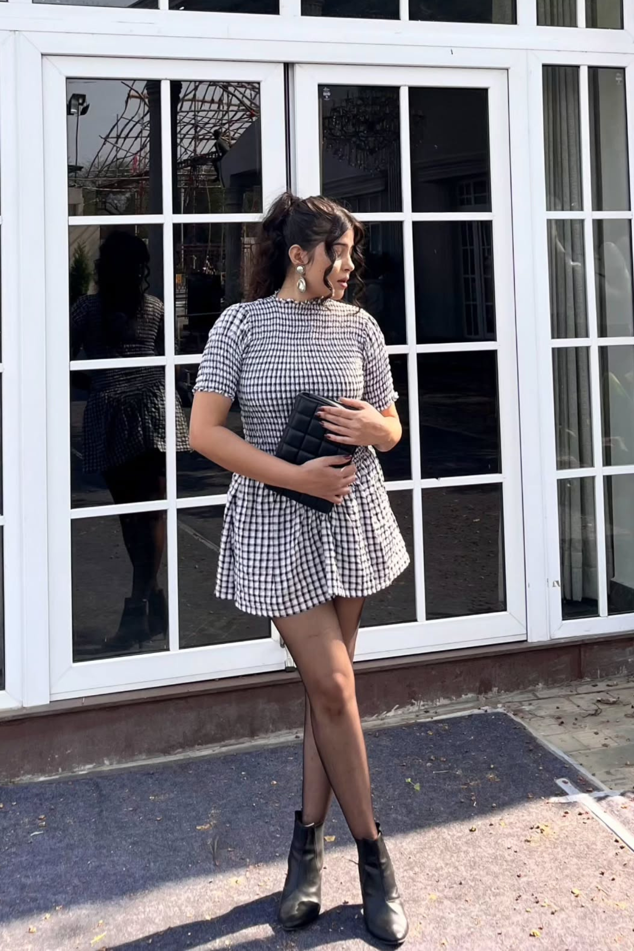 - Pattern: Mid-sized black & white gingham checks